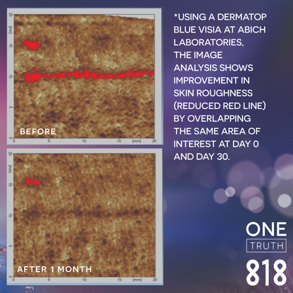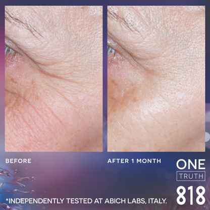 A 30 day clinical trial was conducted by ABICH LABS in Italy to test the effectiveness of ONE TRUTH 818 and its active TAM-818 (Telomerase Activating Molecule) on 100 volunteers aged 36-65.The trial investigated the product's ability to reduce wrinkles and improve skin elasticity and firmness.